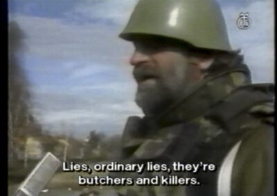 Based on the archives of the International Criminal Tribunal for the former Yugoslavia, the local courts of the region that dealt with war crimes that were committed during the Yugoslav wars from 1991 to 2001, and the relevant media reports of the time, Chimera focuses on the events that took place around the fall of Vukovar in November 1991. Through a juxtaposition of court and news media narratives of the time, with reenactments and archival footage, it aims to investigate the role of media as a propaganda tool from its respective initiators and their agendas, as well as the intertemporal dangers of mis- and disinformation.