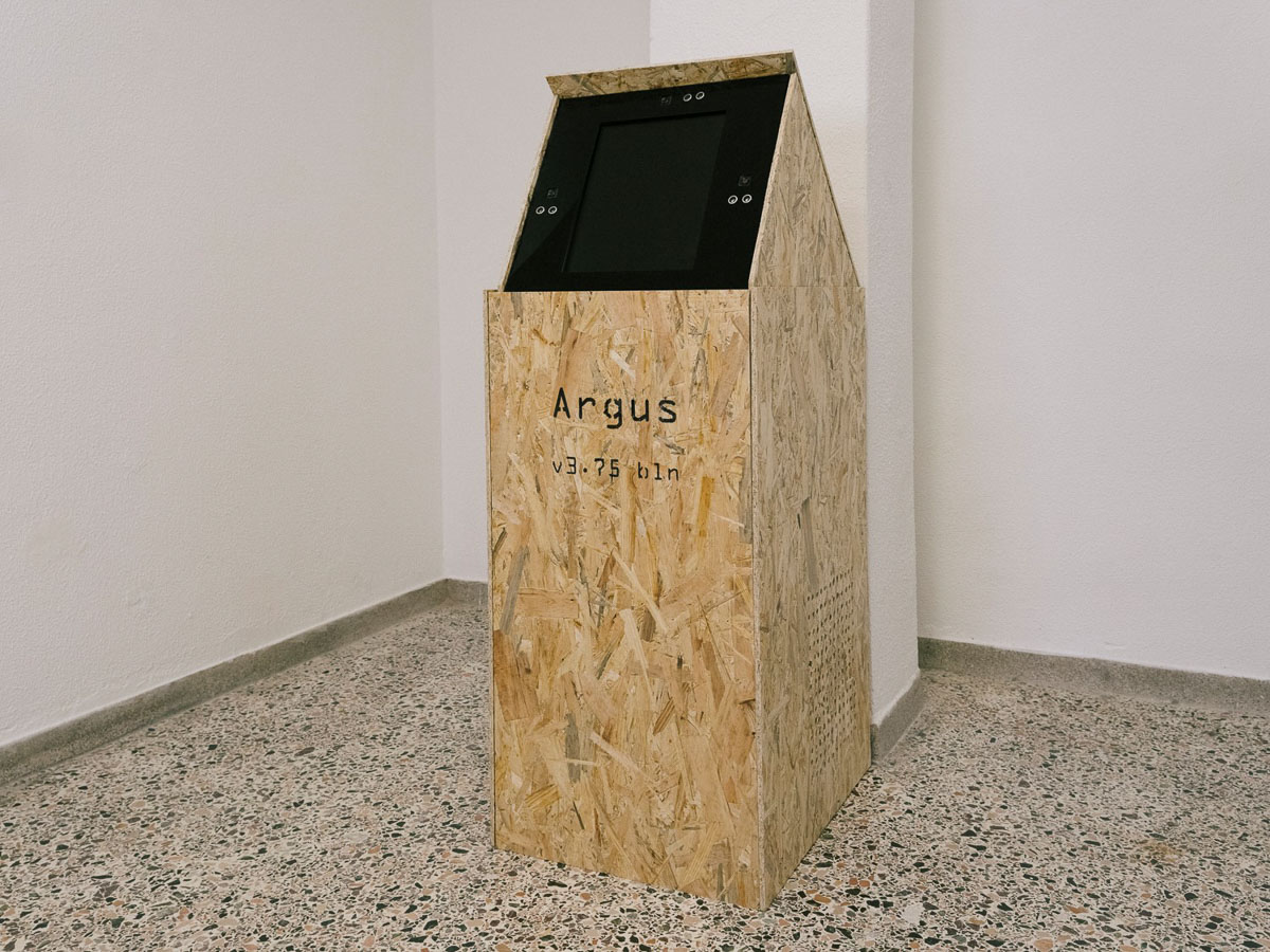 Argus v 3.75 bln is an interactive self-portrait that deals with a society that watches everything while being watched at the same time. The user can destroy its portrait by creating a soundscape. It originates from the Greek myth of Argus Panoptis, a giant with one or many eyes that never slept. Hera had him guard Io, Zeus’ lover. Zeus sent Hermes to set her free. He put Argus to sleep by playing music to him and then killed him. J. Bentham in 1787 named Panopticon his prison prototype model, a concept which later was used by M.Foucault to comment on the state control of the people. Argus was named a USA drone that was used in Afghanistan and it has the biggest sensor resolution camera in the world. In 2020 3.75 billion smartphones are used worldwide, making their users both their guardians and captives.
