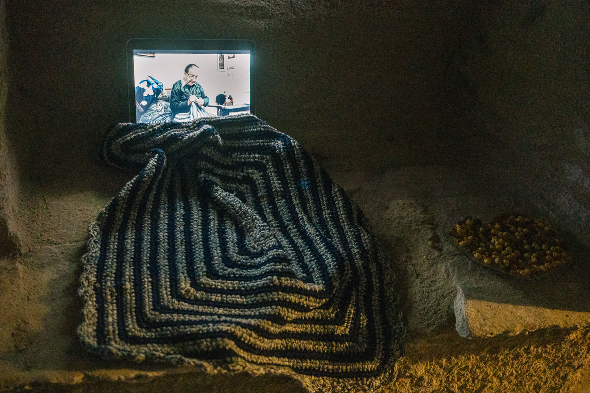 “Veggera” is theoretical, audiovisual, and partially participatory research on the relationship of oral narrative traditions with the creation and strengthening of community. It manifests around the old Tinian tradition of veggera. The research was realised through a series of workshops with elementary students, discussions, and knitting with the locals of the village Falatadow and cinematic derives on the island landscape referring to Tinian painter Gyzi and Lytra.
